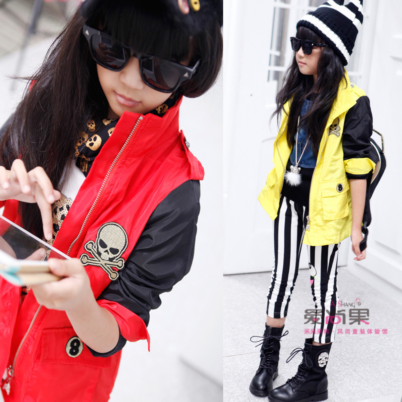 Ветровка с аппликацией черепа и контрастными рукавами