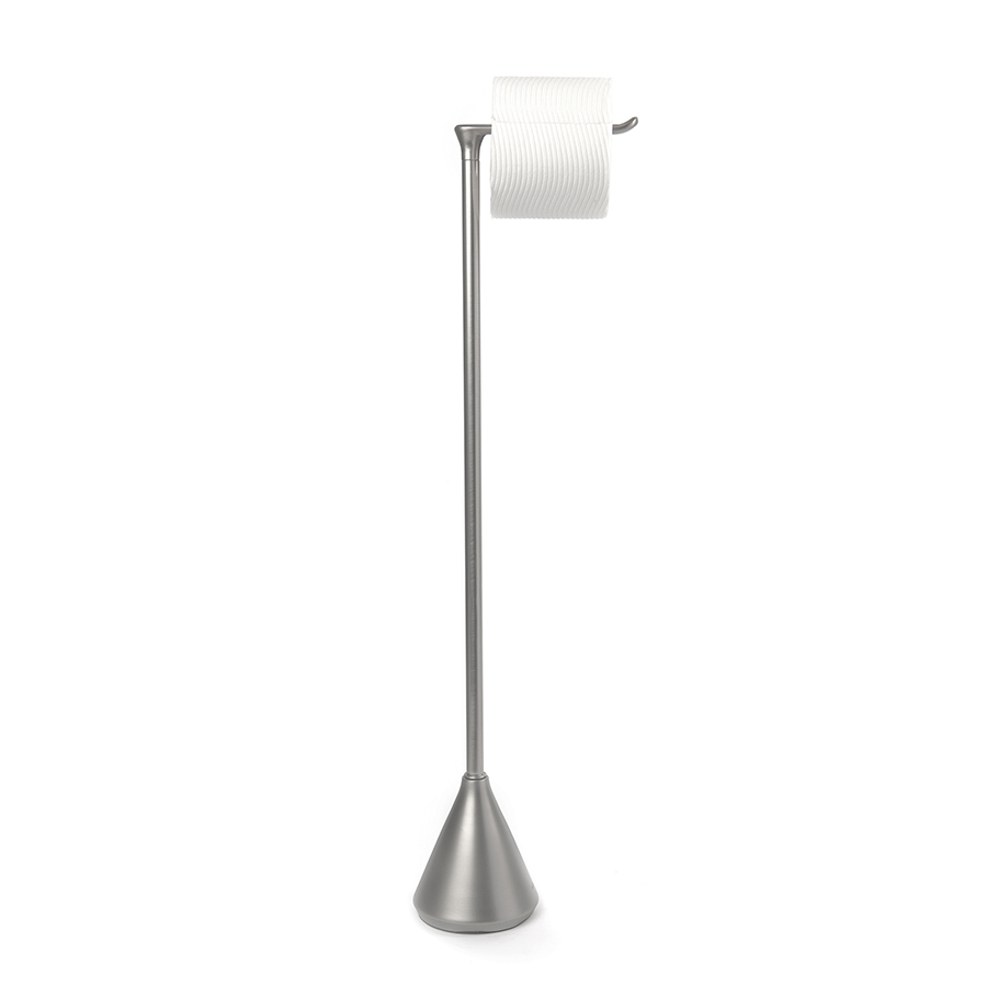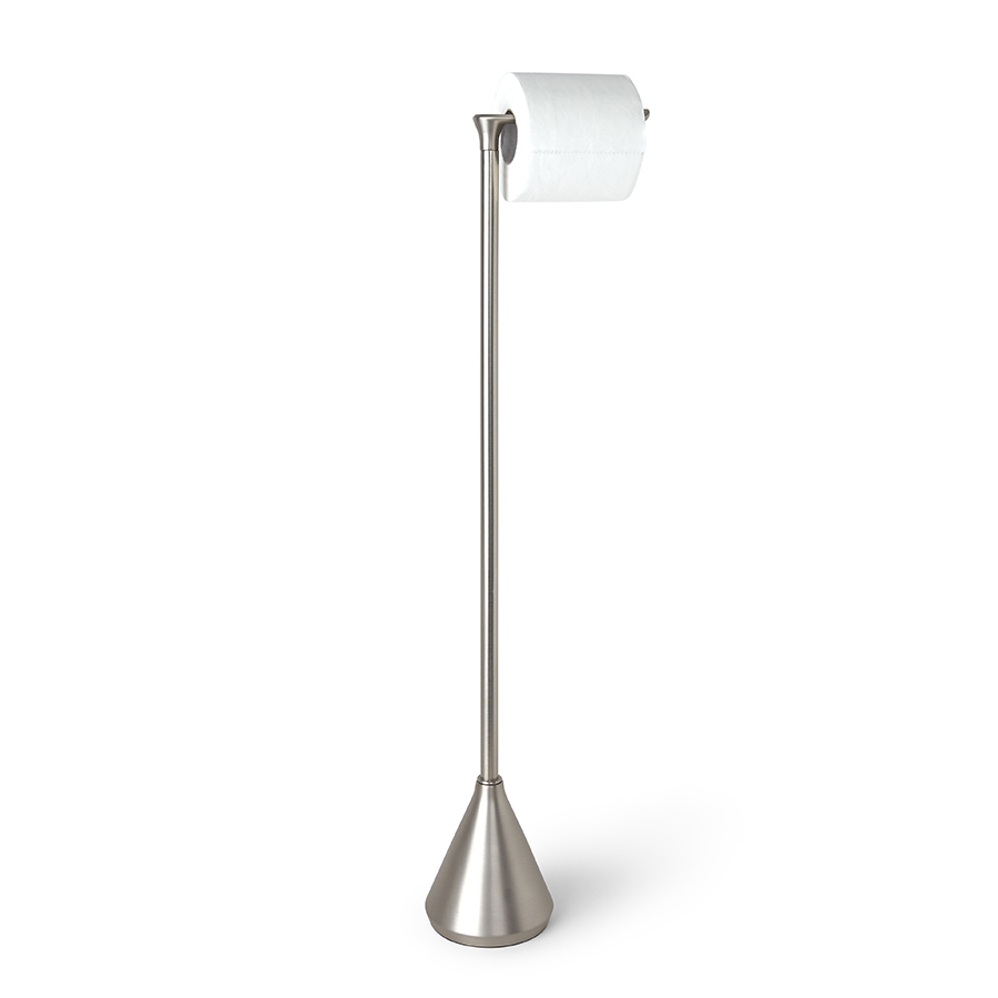 Простые решения для хранения в ванной позволяют эффективно использовать пространство. Чтобы освободить шкафчики от запасов бумаги, перенесите их на лаконичный держатель для бумаги из литого металла. Утяжелённое основание делает его устойчивым, а благодаря литой форме его легко мыть и дезинфицировать. И главный плюс - вам не придётся сверлить стены для установки! Дизайнер Martin Luu