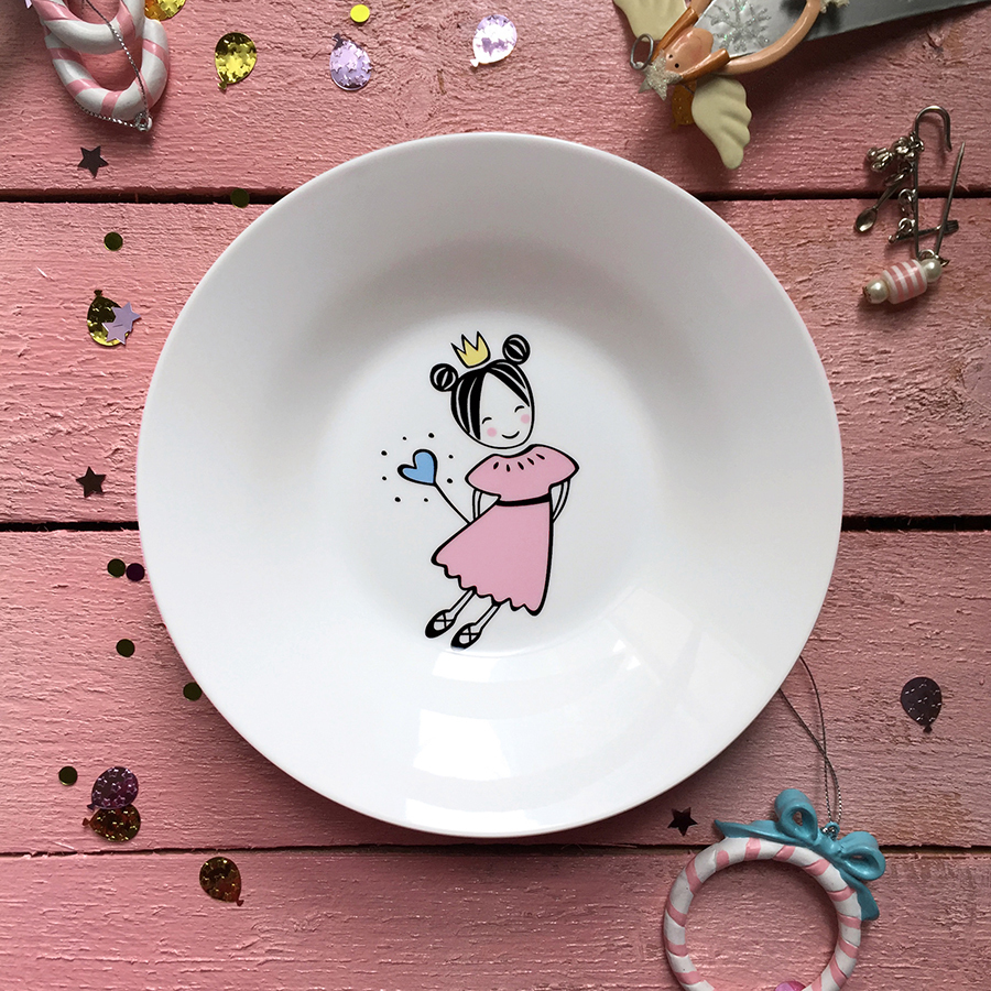 Глубокая тарелка «Маленькая королева» диаметром 20 см вошла в коллекцию «Для самых маленьких». Детская посуда с ярким дизайном научит девчонок и мальчишек самостоятельности, удовлетворит их любопытство и порадует веселыми принтами. Тарелка с бортами изготовлена из высококачественного фарфора, устойчивого к сколам и царапинам. Посуда упакована в фирменную картонную коробку с логотипом бренда.