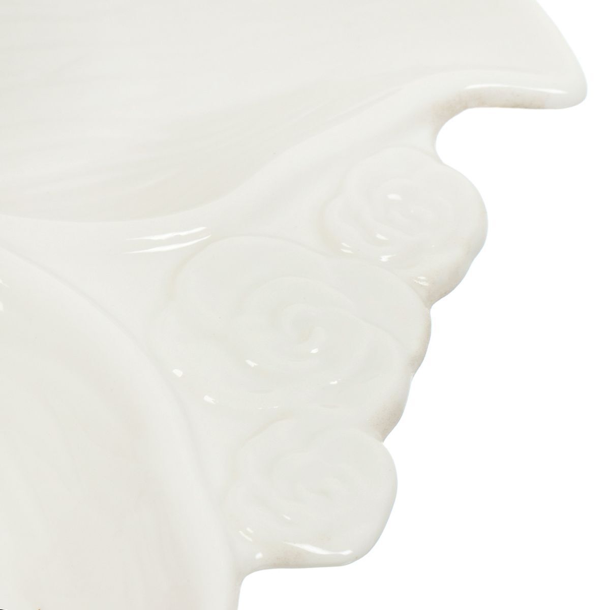 Менажница понадобится для хранения сразу нескольких блюд и для подачи на стол. Выполнена в виде круглого блюда из 5 секций, расположенного на деревянной подставке. С помощью такой менажницы можно подать на стол сразу несколько блюд в пределах одной посуды, при этом не смешивая их между собой. Такая замысловатая вещь идеально подходит для сервировки определенных блюд, например: варенья, снеков или соусов, салатов, заправок и вторых блюд, рыбу со всякими соусами и прочие закуски.