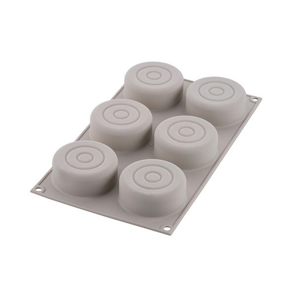 Форма с 6 ячейками поможет удивить близких оригинальными домашними пирожными. Форма выдерживает температуру от - 60 до + 230 °С. Силикон не содержит вредный бисфенол-А и соответствует европейским стандартам качества. Он не имеет запаха и не дымится во время готовки. Материал гибкий, прочный, устойчивый к перепадам температур. Форма выдерживает до 3000 использований. Перед использованием необходимо смазать изделие маслом. Размеры ячейки: ?7,3 см, h3 см. Объем ячейки: 115 мл. Общий объем: 690 мл. При чистке не используйте острые предметы, не режьте десерты прямо в форме. Можно мыть в посудомоечной машине при условии, что не используются агрессивные средства с осветляющим или ароматическим эффектом, это приводит к появлению на форме белых пятен и налета. Контакт с такими продуктами, как кокосовое масло и томаты, приводит к появлению пятен, которые легко устранить, положив форму на час в духовку, разогретую на 200-220 °С. Для удаления жира достаточно прокипятить около 10 минут. Подходит для хранения в холодильнике.