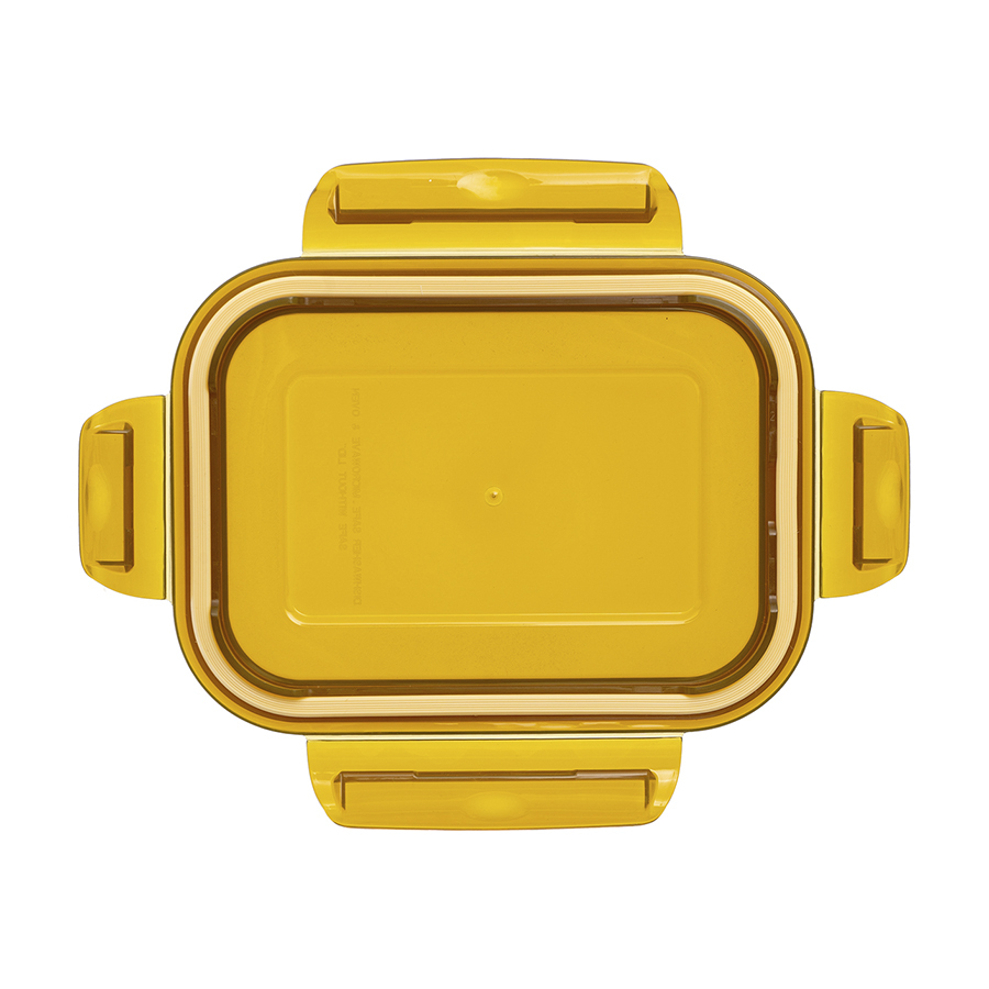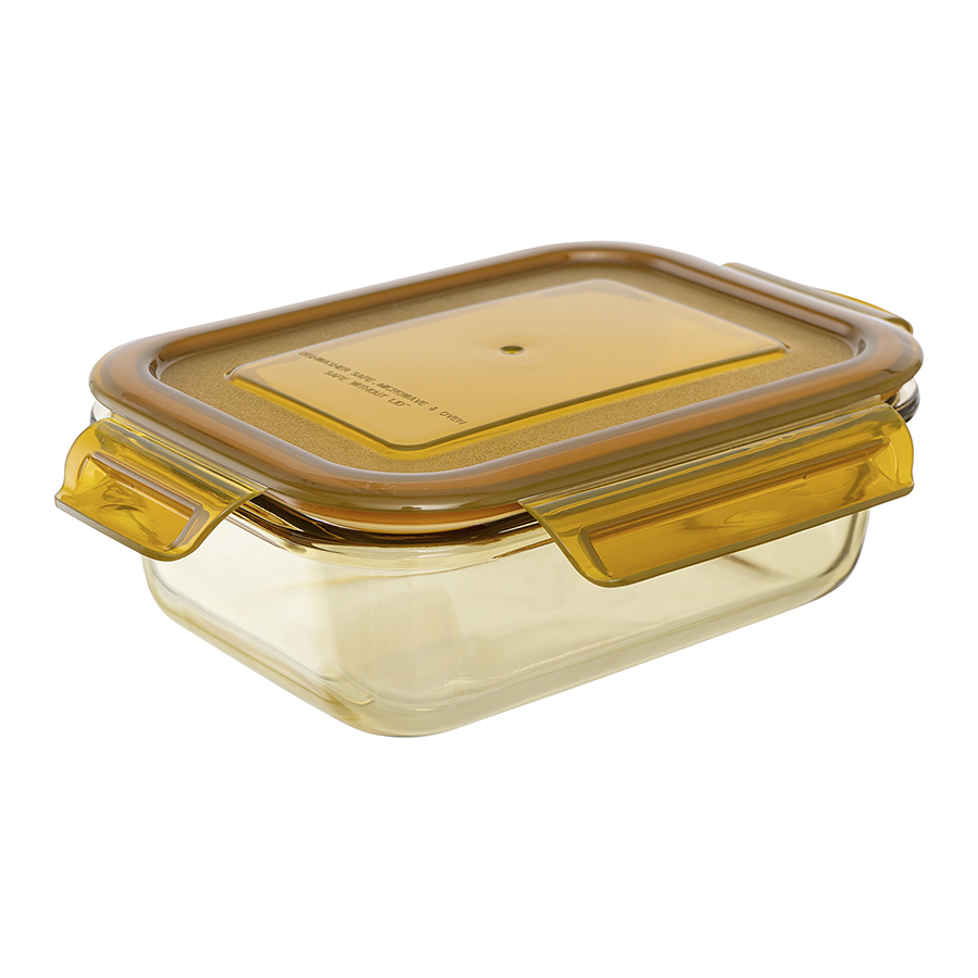 Емкость выполнена из боросиликатного стекла. Материал обладает повышенной стойкостью к механическим повреждениям, температурным перепадам, безвреден для здоровья и окружающей среды, за счет чего идеально подходит для контакта с пищей. Пластиковая крышка плотно прилегает благодаря специальным защелкам, расположенным с четырех сторон.